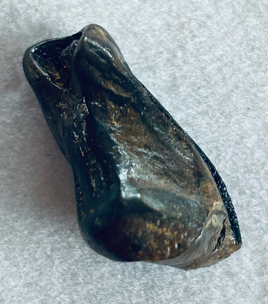 This is a 1" long Hadrosaur tooth from the Hell Creek formation in Garfield County, Montana. It is in great condition with no repair or restoration.