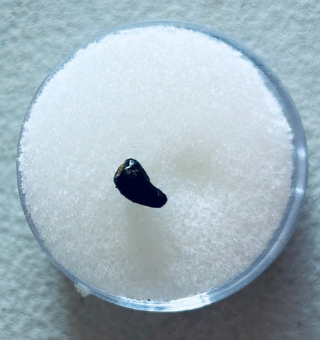 This is a 1/4" Raptor tooth from the Hell Creek formation in Garfield County, Montana. This is a neat tooth for any collector.
