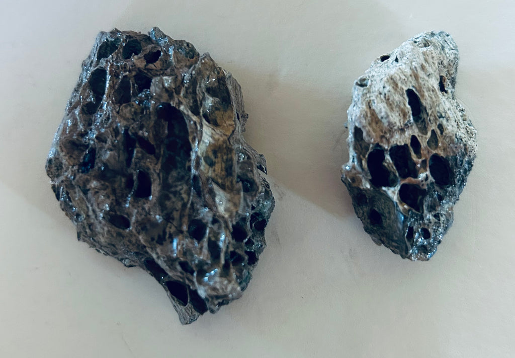 T-Rex bone fragments from the Hell Creek Formation in Garfield County, Montana. Theses fragments are rare and very unique, showing what the inside of the bone looks like. They are in great condition with no repair or restoration.